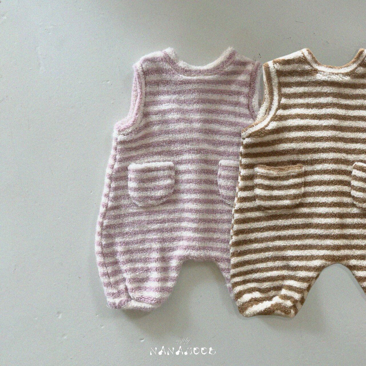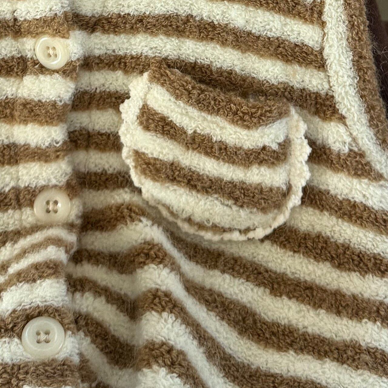 これは暖かみのあるストライプの宇宙服で、ふわふわしたタッチがあります。