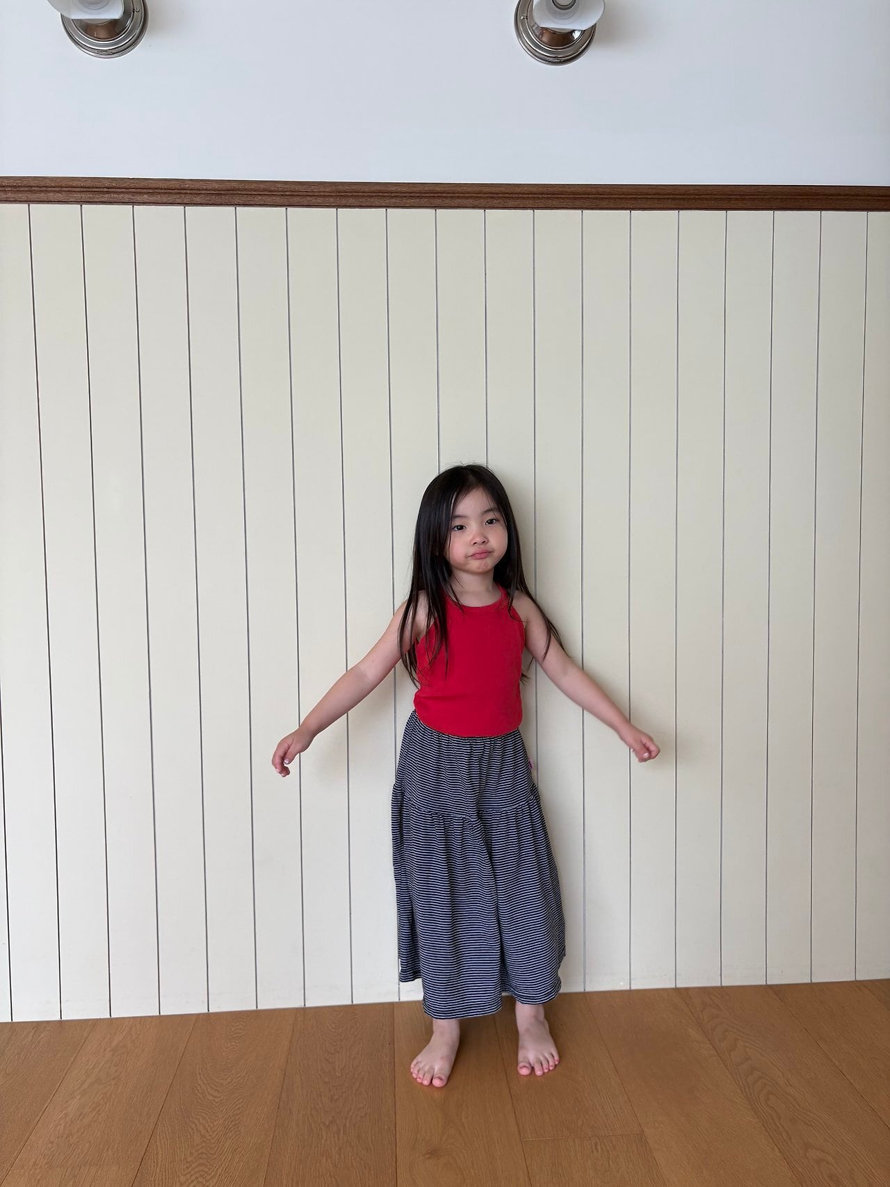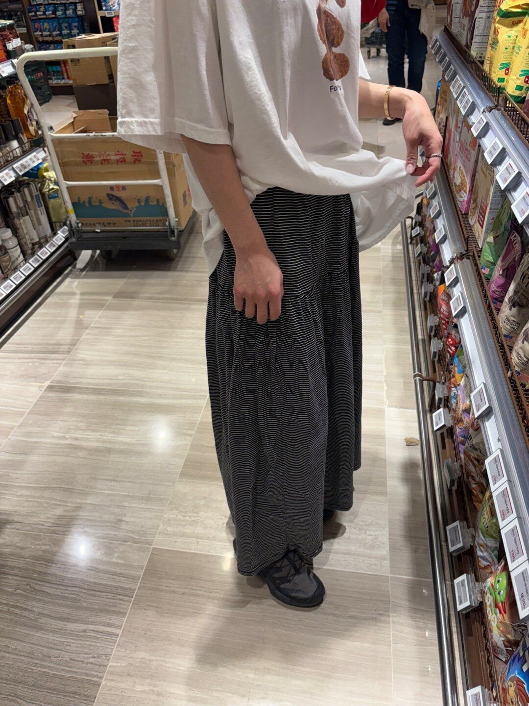 負担に感じない快適なロングスカートは、お母さんと一緒に着用します!