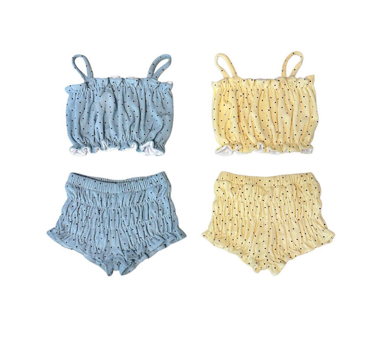 な水着セットアップで、上下は薄く裏地が施されており、